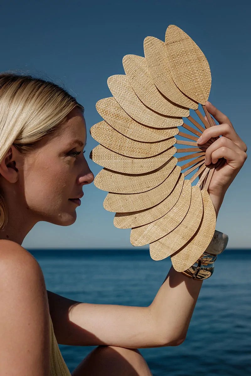 L’éventail original, tendance et fait main : Rafraîchissez-vous avec style ! Pour sa première collection, Éva Ventai, marque française d’éventails haut de gamme, met à l’honneur le raphia, une fibr...