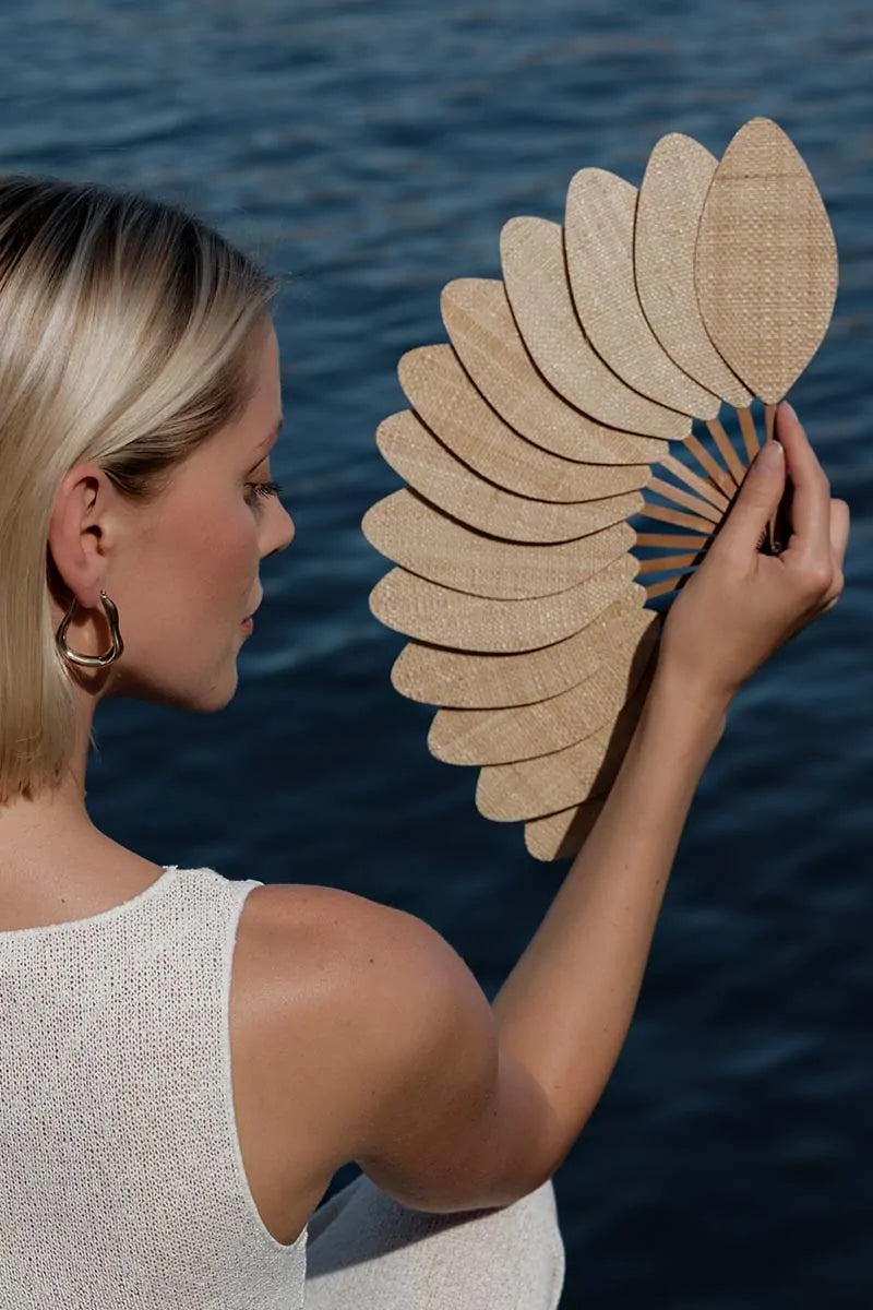 L’éventail original, tendance et fait main : Rafraîchissez-vous avec style ! Pour sa première collection, Éva Ventai, marque française d’éventails haut de gamme, met à l’honneur le raphia, une fibr...