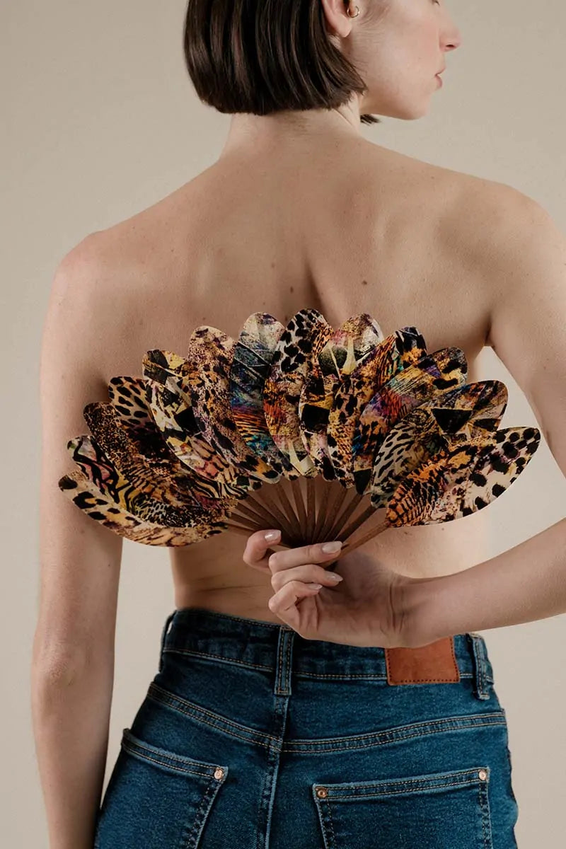 Découvrez la collection Savannah, des éventails de luxe inspirés de la nature sauvage. Fabriqués en Provence avec des matériaux d’exception comme la soie, le cuir ou le raphia, ces accessoires de mode élégants aux motifs animaliers léopard ou zèbre apportent une touche d’exotisme à votre style. Adoptez l’élégance durable de nos éventails Savannah.