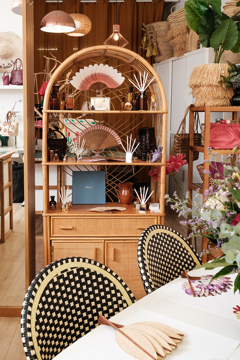 Forte de la grande tradition de la maroquinerie française, Naouel BEKKAÏE insuffle à l’éventail un regard contemporain, nourri par la maîtrise technique et le sens de l’usage. Travail du bois, plissage, façonnage des matières, tressage de fibres naturelles : des savoir-faire rares dialoguent pour donner forme à un objet millénaire, essentiel et résolument actuel.